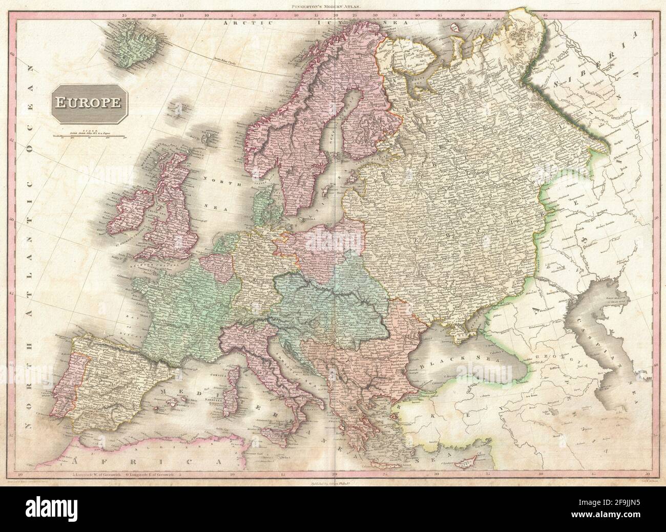 Beautiful vintage hand drawn Pinkerton’s map of Europe from 1818