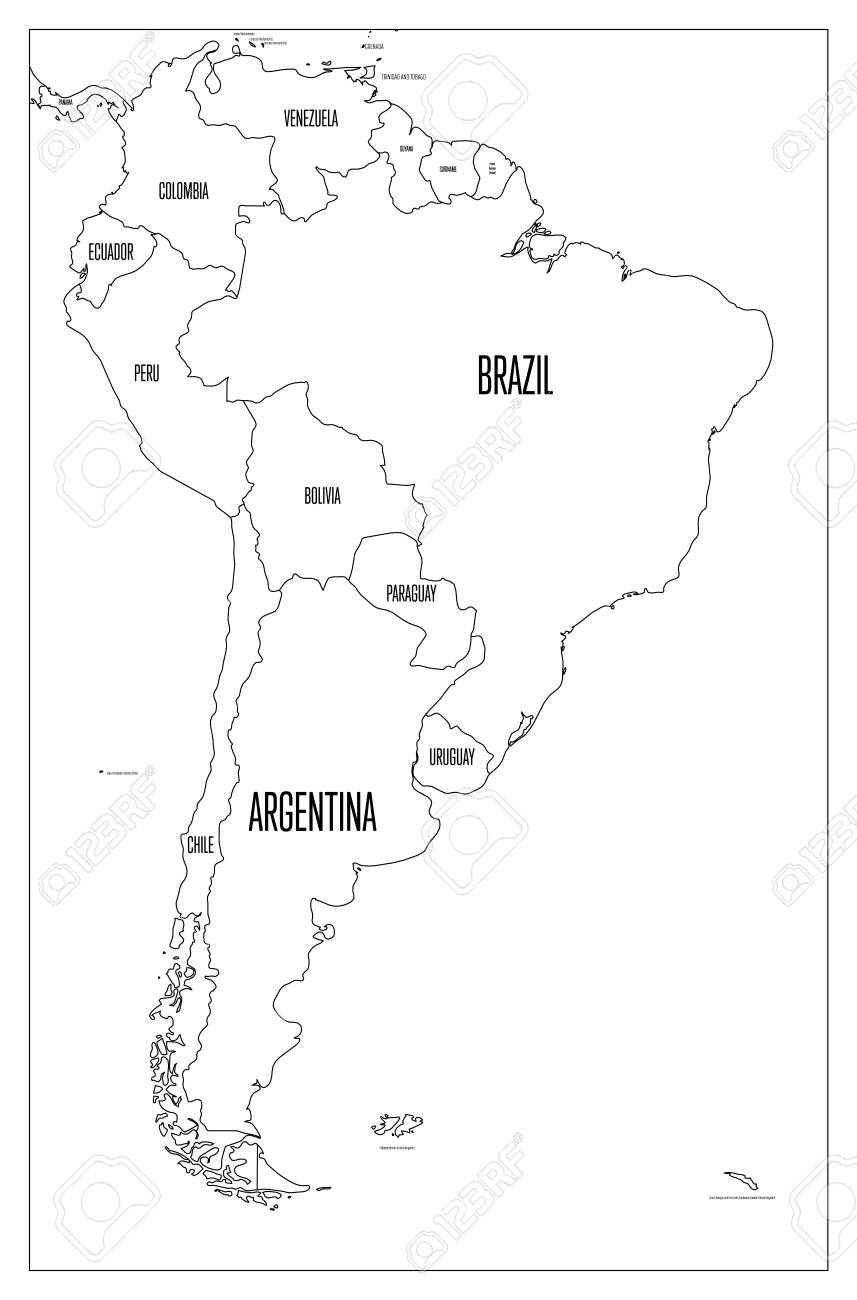 Black And White Political Map Of South America