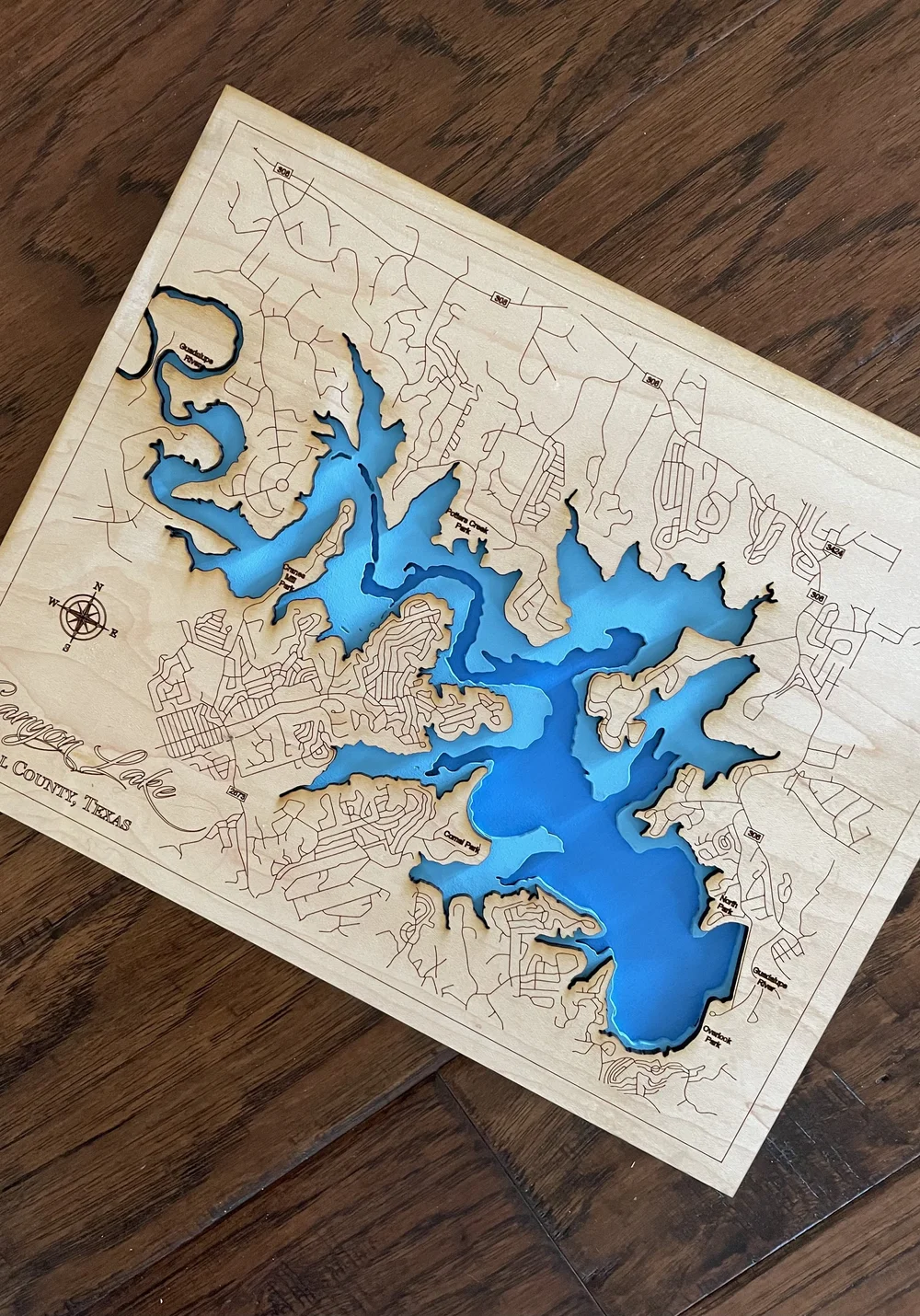 Canyon Lake, Texas 3D Wooden Map | Framed Topographic Wood