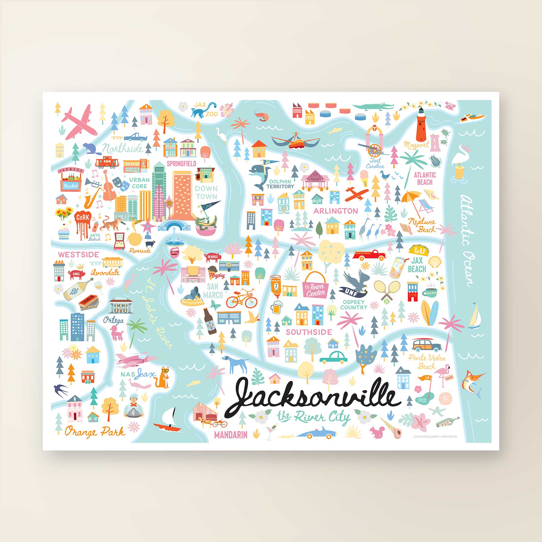 Florida Kids Map Art Print Poster Vintage Artwork Wall Great Home
