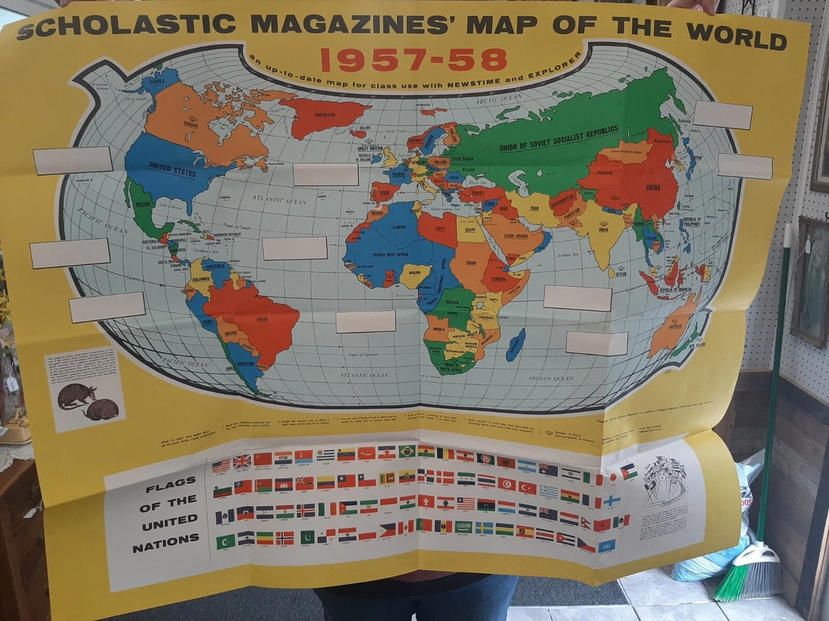 1957 1958, 34″ X 44″ Scholastic Magazines’ News Map, Fold Out