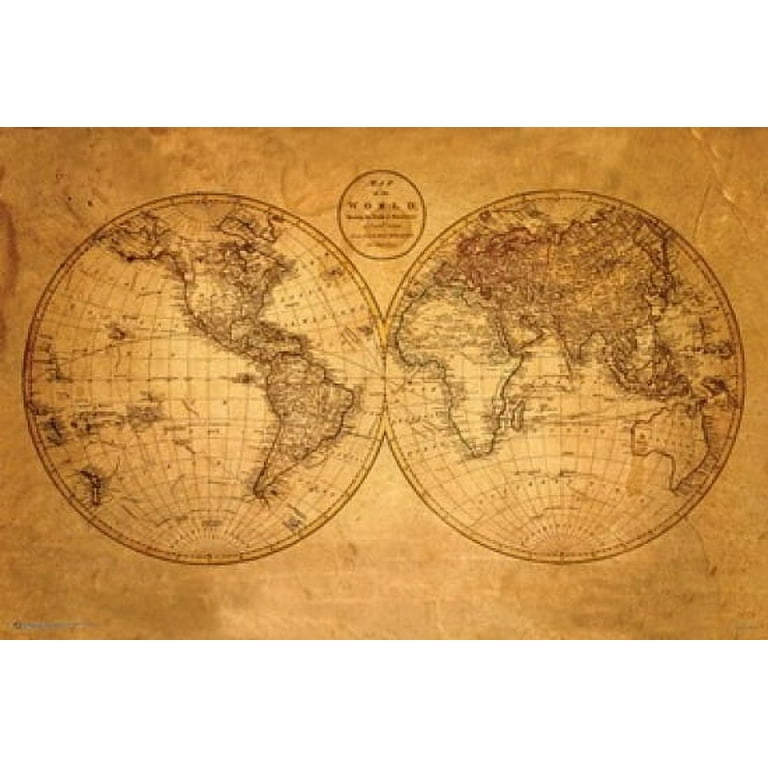 WORLD MAP Old Laminated Poster (24 x 36) Walmart.com