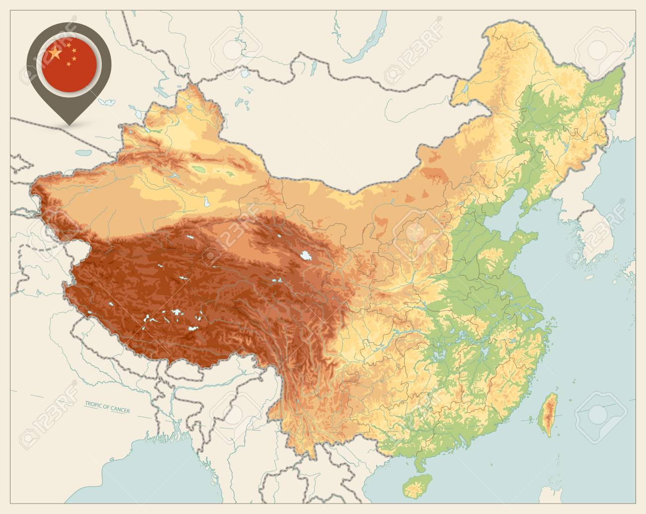 High detailed China physical map with labeling Stock Vector Image