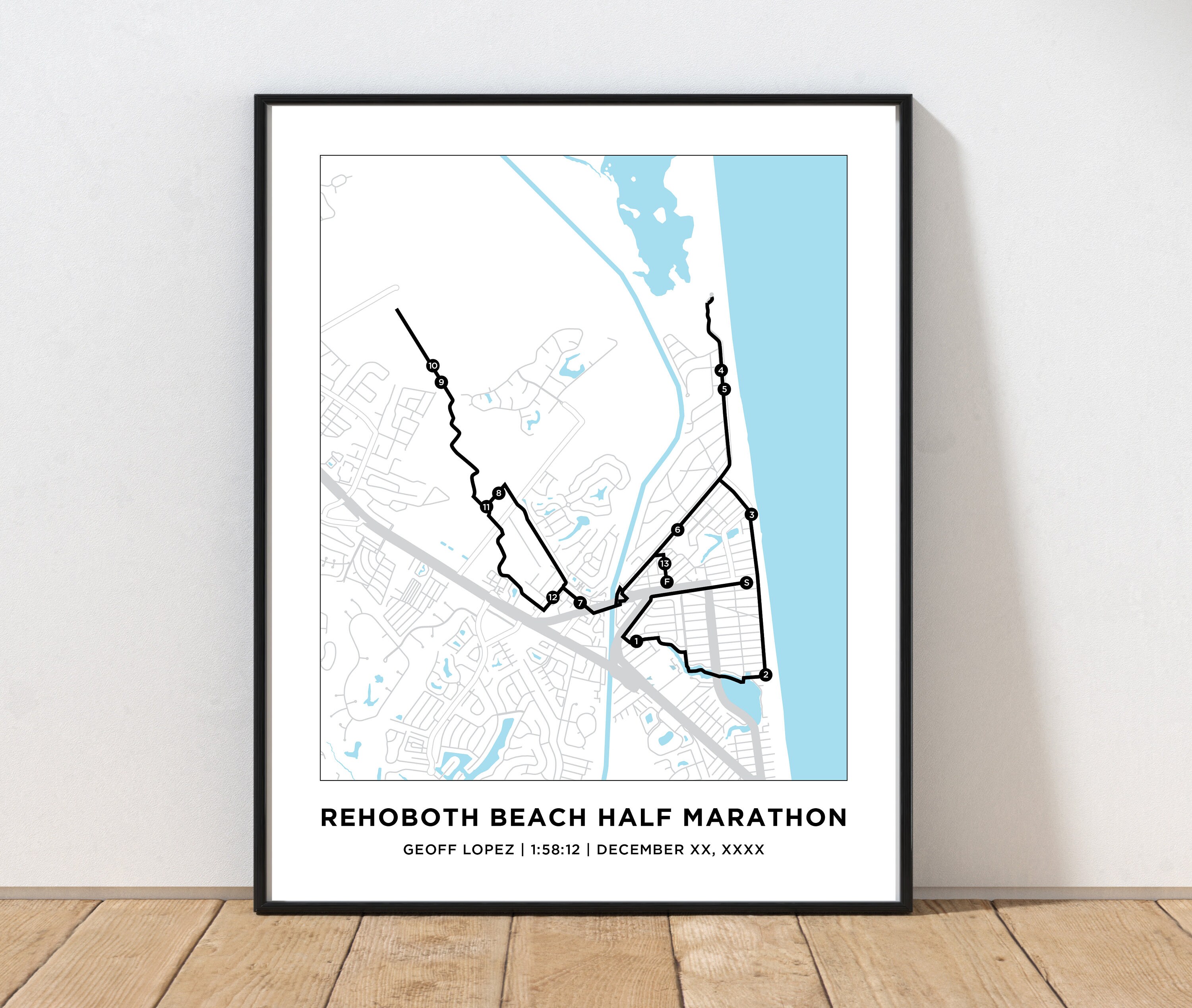Rehoboth Beach Marathon Course Map Personalized Rehoboth Etsy