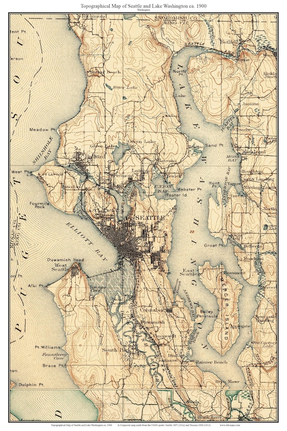 Seattle 1900 Lake Washington USGS Old Topographic Map Etsy Denmark