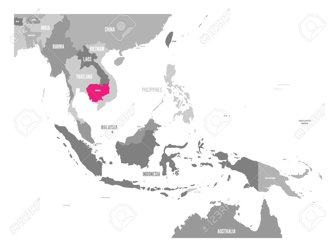 Vector map of Cambodia. Pink highlighted in Southeast Asia region